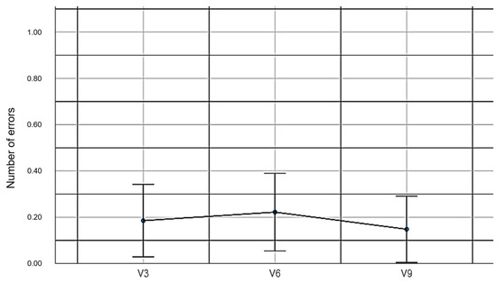 V6: The total errors in the pairing cards game with EMKEY head movements.