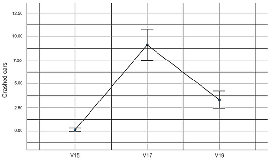 Figure 14 shows the values determined in the car crashing game under the three experimental conditions.
