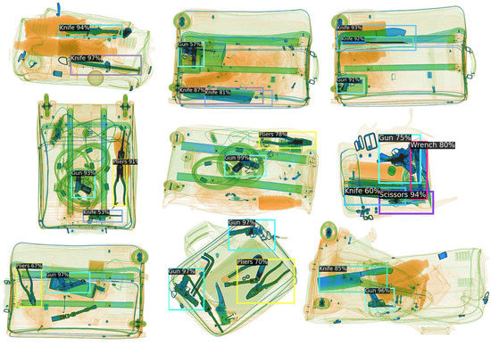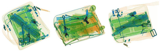 - Miao, C.; Xie, L.; Wan, F.; Su, C.; Liu, H.; Jiao, J.; Ye, Q. Sixray: A large-scale security inspection X-ray benchmark for prohibited item discovery in overlapping images. In Proceedings of the IEEE/CVF Conference on Computer Vision and Pattern Recognition, Long Beach, CA, USA, 15–20 June 2019; pp. 2119–2128. [Google Scholar]
