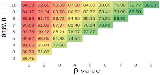The window accumulation was controlled by two parameters, and , which balanced model sensitivity and detection accuracy. The value of was varied from 2 to 10 and that of from 1 to to examine their influence on the model’s sensitivity and adopted a scanning period of 128.