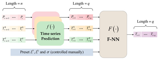 where represents model’s parameter vector; is the implicit function of the time-series prediction model to be introduced in Section 3; represents the input historical sequence, as shown in Equation (2):