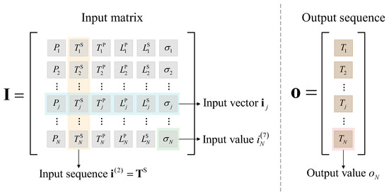 The original operating database of the converter valve can be divided into an input matrix and an output sequence. We denote the historical data matrix of independent parameters in the valve cooling system as the input matrix , as shown in Equation (14):