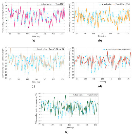 - The Transformer model only: equivalent to the TransFNN model without the FCM and ANN modules. The valve’s cooling water temperature was directly predicted with the Transformer.
