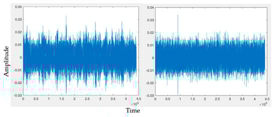 Speech duration is the fifth feature, representing the time taken by a subject to complete a sentence fragment. A sample voice spectrum for 10 s audio of the active subject and the fatigued subject is shown in Figure 6.