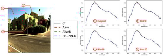 In this paper, we add a data augmentation step to the AWAN DNN model [35], so the networks can account for rotation and blur. We do not also data-augment HSCNN-D [50] because, as will be shown later in the result section, HSCNN-D is more stable against both conditions.