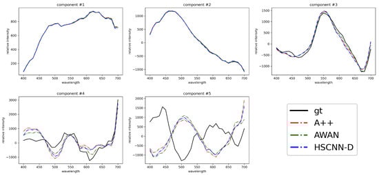 The earliest SR approaches seek 3-dimensional linear models of spectra. It is then shown that, if such a “3-D” linear model holds, the spectra can be exactly recovered from RGBs using a linear transform [28,38]. While a 3-D model can only cover limited variance of real-world spectra [39,40,41], simple statistical models such as regression [27,34,42] and Bayesian inference [26,43] are proposed, which supports higher- or full-dimensional spectral recovery. As the amount of available data has increased, recent methods are based on richer inference algorithms, including sparse coding [29,44], shallow networks [45,46,47] and deep neural networks (DNN) [29,30,35,48,49,50,51]. However, not all recent and early methods have been benchmarked on the same database so a fair overall comparison of the methods is not fully available. Yet, it would be fair to say that DNNs are accepted as the leading SR method.