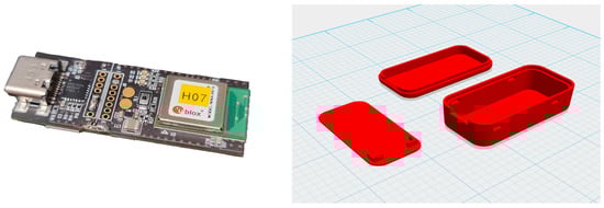 (Left) Printed circuit board. (Right) Device case.