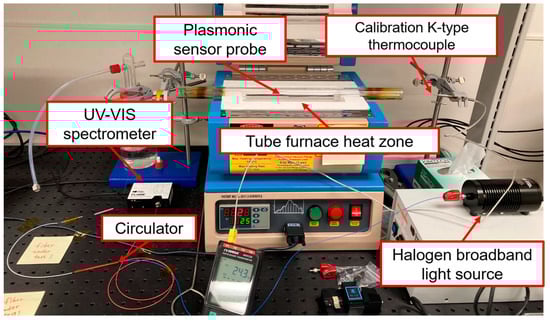 Experimental setup of plasmonic sensor probe temperature sensing.