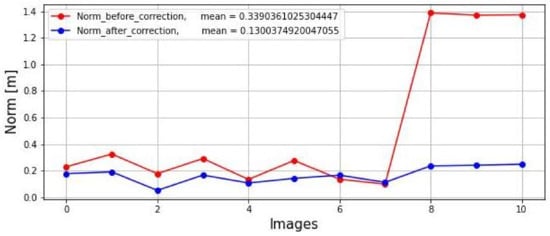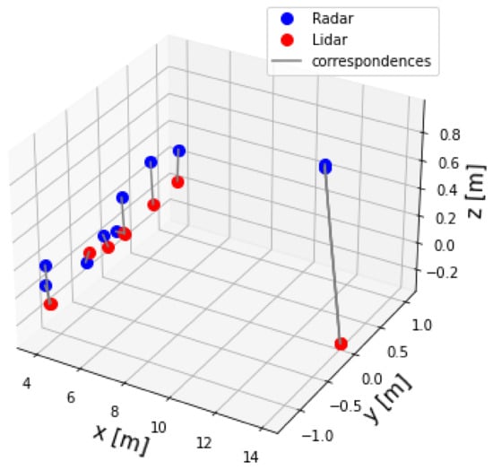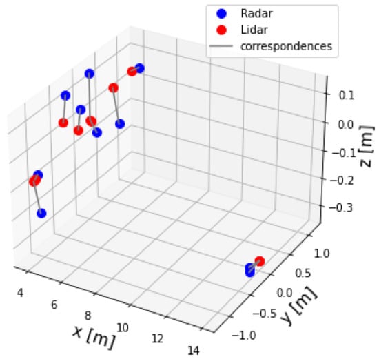 The extrinsic calibration matrix is composed of a rotation matrix and a translation vector that best aligns two data sets of points, as shown in Equation (7). The proposed alignment method for 3D data points is based on [29,35].