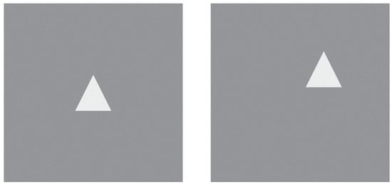Test cases were created to verify the calculations using reference layer images compared to observed layer images. The test case consists of a single triangular part with a fixed size and, therefore, a fixed area. The position of the part changes layer by layer; 100 test images were created with a centroid shift of 1 pixel per image, and a gray value of 128 for the background (metal powder) and 235 for the melted metal area. To simulate disturbances, a Gaussian distribution was added to every pixel. Figure 6 shows two examples of the generated test images.
