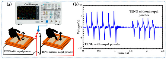 | Dehydrated nopal powder | Polyimide film | 5.22 × 5.22 cm2 | 0.556 mW·m−2 at RL of 76.89 MΩ a 2.309 mW·m−2 at RL of 76.89 MΩ b | 16.4 V 38 V | Potable and simple structure, low-cost fabrication, and stable performance | Wear of film by friction | This work |