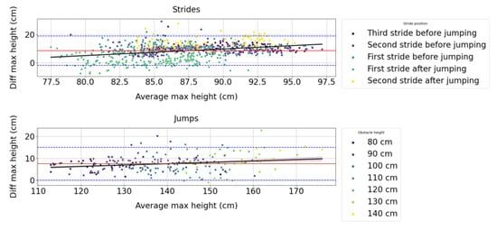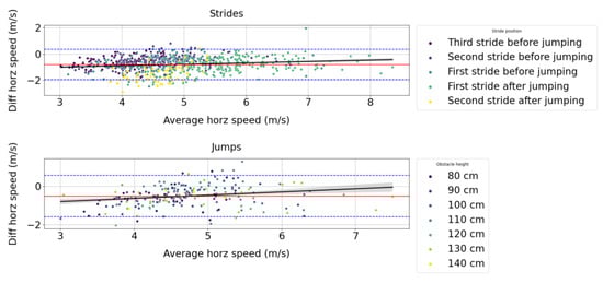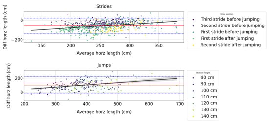 - two Bland–Altman plots (one for strides and one for jumps) [];