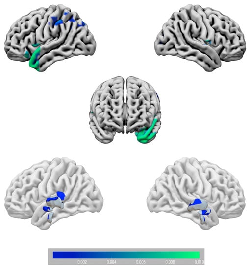 - Tzourio-Mazoyer, N.; Landeau, B.; Papathanassiou, D.; Crivello, F.; Etard, O.; Delcroix, N.; Mazoyer, B.; Joliot, M. Automated Anatomical Labeling of Activations in SPM Using a Macroscopic Anatomical Parcellation of the MNI MRI Single-Subject Brain. Neuroimage 2002, 15, 273–289. [Google Scholar] [CrossRef] [PubMed]