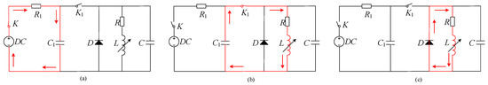Principle of capacitor power supply circuit. (a) Capacitor charging, (b) Capacitor discharge, (c) Afterflow process.