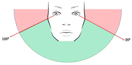 We employed the Perspective-n-Point (PnP) algorithm—a widely used technique in computer vision and computer graphics for determining the position and orientation of a three-dimensional (3D) object in a scene based on its 2D projection in an image. Eye detection and feature extraction methods are first applied to the image to obtain the eye_center point, eye_gaze line, and eye_view using the PnP algorithm. Once the eyes are localized, landmarks are extracted using techniques such as the Active Shape Model (ASM) or the Active Appearance Model (AAM), which enable estimation of the geometric center of the eye or the eye-center point. It is worth mentioning that other methods, such as Haar cascades, Viola-Jones, or deep learning-based methods, can be used for this purpose. The eye_gaze line, which denotes the direction of the gaze, is computed by drawing a line from the eye_center point in the direction of the gaze. This is achieved by estimating the rotation and translation parameters of the camera using the PnP algorithm and projecting the eye_center point onto the image plane. The direction of the eye_gaze line is then obtained by calculating the vector connecting the projected eye_center point with the image center. By transforming the eye position into the coordinate system of the camera using the estimated head pose and projecting it onto the image plane using the camera’s intrinsic parameters, it is possible to calculate the eye view. In the above pseudo-code, we use the math functions math.atan2 and math.degrees to calculate the degree between two points: the eye_center point and the eye_view point.