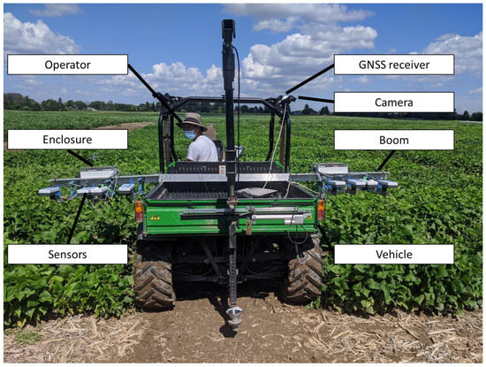 The goal of this project was to design a HTPP platform for use in field conditions. To illustrate the system’s performance, it was to be deployed in a field planted with dry beans (Phaseolus vulgaris L.). The system should be able to take canopy measurements from different types of crops at an early stage, and be based on the quick-install concept [31]. In this way, users can mount the system on a vehicle they already own and unmount it if they need the vehicle for a different operation involving other attachments. The system should be designed to target individual rows or plots, rather than an entire field, in order to take advantage of higher spatial resolution. The system should also integrate envirotyping. The application of HTPP in beans and pulses is not typically found in the literature [32]. The completion of this goal is considered a step towards the ultimate goal of equipping all kinds of growers with a tool for rapid, non-destructive, reliable, and affordable assessment of their crops. It is foreseen that this tool will be helpful for small breeding centers in need of an early signature of hybrid performance.