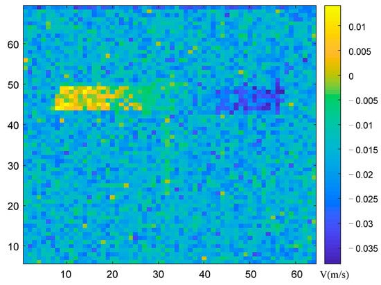 We set the target range image at different times as ; we took the range image at time as a standard value and made a difference between the subsequent range images and . According to the principle of the slice differential velocity measurement, all the pixels on the multiple range images were differentiated, and the velocity image was calculated after the distance information was obtained.