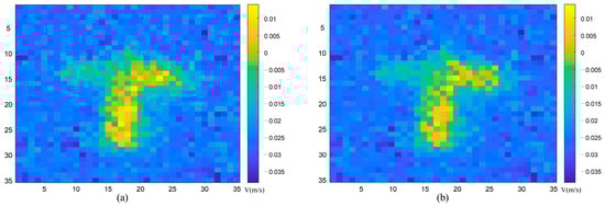 Velocity image results at different times. (a) ta moment velocity profile result; (b) tb moment velocity profile result.