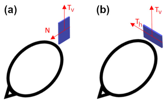 In the current paper, we use three types of sensors for our computations: YIGM, OPM, and SQUID. The YIGM sensor is a solid-state magnetometer based on specially shaped yttrium-iron garnet thin films. As mentioned earlier, the YIGM sensor is flat by design and has dimensions of 38 × 38 × 3 mm3. The sensor has two perpendicular sensitive axes, both lying in the sensor’s plane. There are two possible sensor placements with respect to the head: normal to the head surface (Figure 1a), where the ’normal to the head’ coincides with one of the sensitive axes, and tangential (Figure 1b).