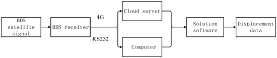 Bridges are a vital component of the road infrastructure network and the development of the national economy. During operation, bridges may be affected by factors such as traffic loads, wind, and earthquakes, resulting in a certain amount of deformation of the bridge. In severe cases, it can lead to safety accidents. Therefore, it is necessary to monitor the health of bridges, especially the displacement generated by the bridge under load [1]. In addition to strain gauge [2], optical fiber sensor, and accelerometer [3], there are also precise level, robotic total station (RTS) [4,5,6,7,8,9], LiDAR DTMs [10,11], and global navigation satellite system (GNSS) instrument [12,13,14], etc. Strain gauge and optical fiber sensors have limitations in displacement measurement [1], and the calculation of accelerometer by double integration will lead to serious errors [15,16]. Although level and RTS have achieved good results in displacement monitoring, there are still some limitations, such as not working all day as well as the need to see between stations [12,17,18]. In contrast, as a geodetic survey method, GNSS technology has the advantages of providing three-dimensional coordinates, all-weather operation, and not requiring a line-of-sight between target points [13,14]. As early as 1997, GPS had been applied to the Humber Bridge, and the dynamic displacement of the bridge was successfully obtained [19], indicating that GPS could be applied to bridge monitoring. With the development of GNSS technology, its application in bridge displacement monitoring had also been greatly developed, such as with the application of GNSS technology in the Talkha highway steel bridge in Mansoura [20], the Yeongjong Grand Bridge in South Korea [21], and the Severn Suspension Bridge in the UK [22]. A large amount of literature has been published in recent years, but most of the research is on GPS [20,23]. Beidou Navigation Satellite System (BDS) is a satellite navigation system that has been formally networked in 2020, and has also been applied in the field of deformation monitoring [24,25]. In terms of bridge displacement monitoring, Xi et al., demonstrated through experiments that the performance of BDS-RTK in bridge monitoring is comparable to that of GPS-RTK, and BDS-RTK is subjected to less background noise [26]. This indicates the feasibility of BDS in bridge displacement monitoring.