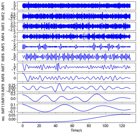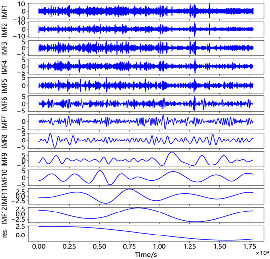 - The original signal was decomposed into each order modal component (IMF component) and a residual component (res component) by CEEMDAN.