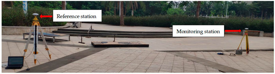 - The collected satellite data is relative computed with the commercial software compass solution to obtain the three-dimensional coordinates of the monitoring station, and then the displacement time series is obtained through the Equation (1) [21].