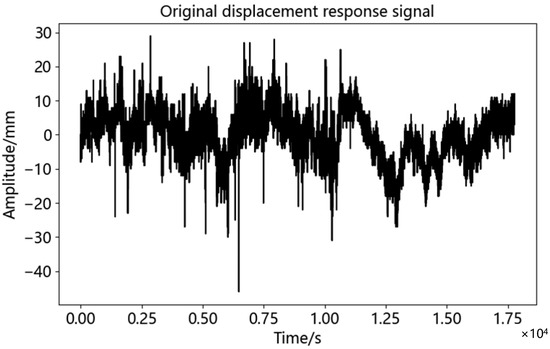 It can be seen from Equation (7) that bridge displacement monitoring signal y(t) can be decomposed into K modal components and one residual term. The CEEMDAN method directly removes the noise component to realize signal de-noising.