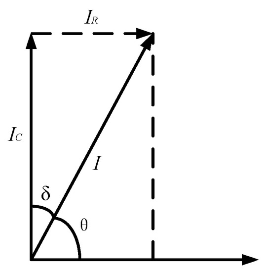 The insulation characteristics of the cable can be equated to the RC parallel circuit model, and its equivalent circuit diagram is shown in Figure 1. R is the equivalent insulation resistance of the cable insulation medium, and C is the equivalent distributed capacitance of the cable insulation medium. The corresponding vector diagram of the model is shown in Figure 2, where δ is the dielectric loss angle and θ is the phase difference between the fundamental voltage and the fundamental current. From the phasor diagram, it can be determined that