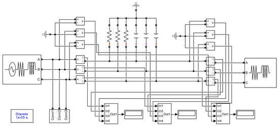 - Set the equivalent insulation resistance of the phase C of the cable to 10 MΩ and the equivalent distributed capacitance to 380 nF to characterize the severe aging of the C phase insulation of the cable.