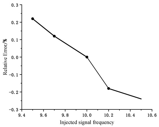 In order to quantitatively analyze the effect of frequency fluctuation on the dielectric loss angle tan δ, by changing the injection signal frequency in the simulation model and setting the injection signal frequency to vary in the range of 9.5~10.5 Hz, the change in the tan δ relative error is shown in Figure 13. From Figure 13, it can be seen that when the injection signal frequency fluctuates, the tan δ relative error does not exceed 0.25%, and the effect on monitoring the cable insulation tan δ value is small.