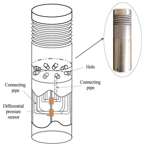 In this paper, a solid-state differential pressure anemometer is mounted on the multi-rotor UAV, and its structure is shown in Figure 3. The principle of the differential pressure anemometer in this work is that the differential pressure between the two ends of the cylinder varies with the wind speed. According to the variation in the differential pressure and distribution, the corresponding wind speed and wind direction can be calculated. Figure 4 is a schematic diagram of the anemometer measurement.