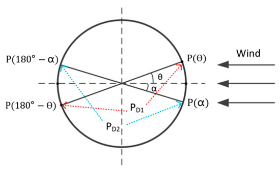 where is the corrected wind speed under , is the second-largest differential pressure under the tilt angle and represents the influence of the angle of attack on the pressure distribution. For Equations (24)–(27), there is a detailed derivation process and explanation in reference [19], which will not be introduced here.