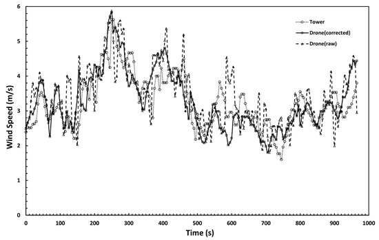 Wind speed measurement results between the meteorological tower and airborne anemometer.