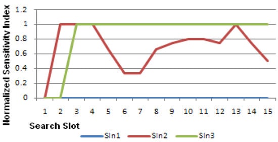 Star symbols in Table 3 indicate a detected event or trigger for the values of ED, TD1, TD2, and TD3 within each search slot. Each value of S1, S2, and S3 is −1 or +1 depending on the exclusive match between ED and TD1 and TD2 and TD3, respectively. SIn1 to SIn3 represent Normalized Sensitivity Indices values for SI1 to SI3.