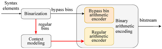 22]. Each binary symbol is referred to as a bin. The critical information of the video sequence is represented by the syntax elements, which aim to represent the video with the least amount of data possible while allowing for the reconstruction of the video sequence at the decoding stage.