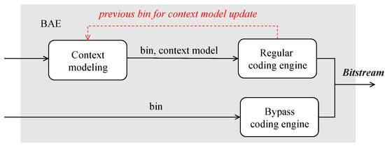 One of the features of CABAC is that each time a regular encoding is performed, the probabilistic model of the current encoded bin needs to be updated. The context modeling needs to transmit the same throughput to support the BAE with multiple bins constructed above.