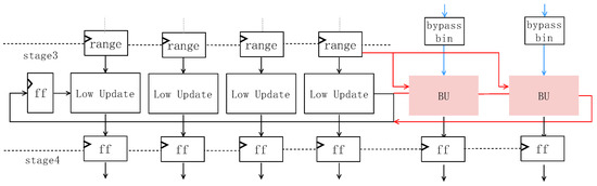 low can be performed. If more multiple bypass bins are attempted, more cases need to be processed, which will be an extremely complex process that will consume a large hardware area and may become a new critical path. So this paper proposes area-efficient BAE pipeline architecture with compatibility.