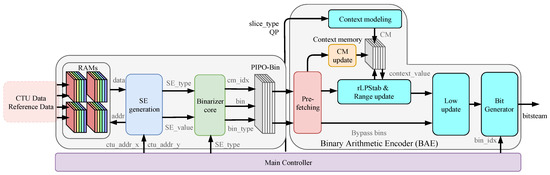 15] proposed the processing of 1 to 5 bypass bins at the same by duplicating the number of bypass encoding engine (BEE) blocks for improving the throughput to be transmitted or stored. Ramos et al. [