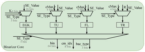 19] propose a new Register Transfer Level (RTL) architecture of HEVC CABAC encoder, where all SEs transmitted for 4 × 4 sub-blocks are studied and implemented. Saggiorato et al. [