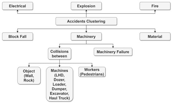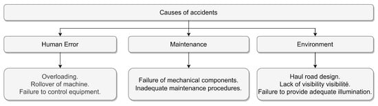 - Machinery: caused by the action or motion of machinery or by the failure of component parts. This category includes all haulage machines, such as dozers, haul trucks, front-end loaders, load–haul–dumps, dumpers, and excavators. Accidents caused by an energized or moving unit or failure of component parts, as well as collisions between machines and objects or workers, are also included.