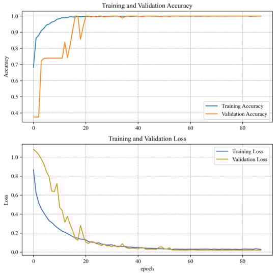 The final model consisted of 2,261,827 parameters, of which only 3843 were subject to optimization during learning (Table 3). Parameters that were not subject to optimization already had optimized values for proper feature extraction from images, thanks to previous training on the ImageNet set. This method of operation allows significantly reducing the learning time of the algorithm compared to the case of learning the whole model.