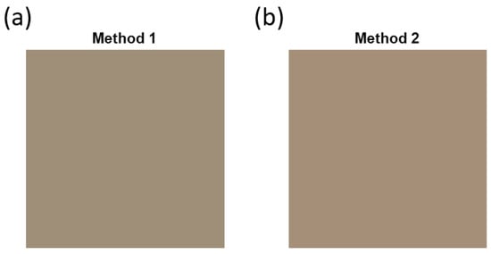 RGB patch obtained through the mean value of the spectral reflectance of the pixels included in the segmentation using (a) method 1 and (b) method 2.
