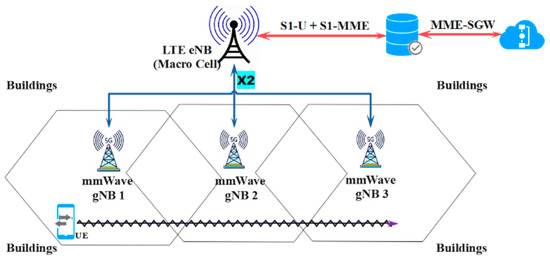 28]. This integration is also expanding the coverage area of the mmWave network. We used the DC framework suggested in [