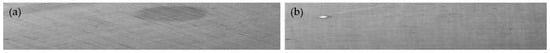 Examples of defects from the TILDA dataset: (a) large oil stain in the upper right corner, and (b) medium-sized hole in the upper left corner.