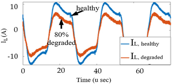 Inductor current in the rated condition and in a degraded condition.