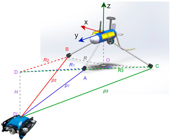 | Input: The distance between the three hydrophones on the buoy and the central acoustic beacon of the underwater vehicle: ρ1, ρ2, ρ3; |