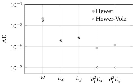 Mean angular errors (AEs) of the displacements, strains, and strain rates for the spatial OF approach (Hewer) and the proposed STOF approach (Hewer–Volz).