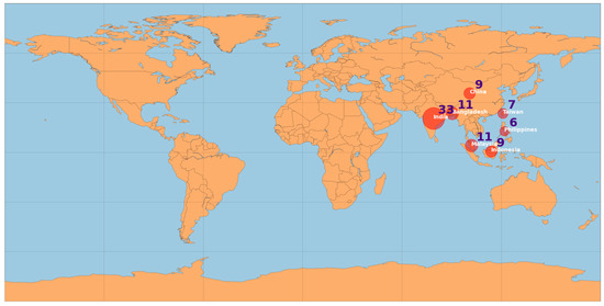 Table 3 lists the low-cost sensors used to monitor water quality, as identified in the selected articles. The majority of these sensors () were manufactured by DFRobot, followed by Atlas Scientific () and Vernier (). Some papers mention other manufacturers such as Thermo Fisher Scientific, Hach Company, Istek, Mettler Toledo, Asmik, Wilsen, Adafruit Industries, Daejin Instrument, Sensirion, HiLetGo, eKoPro, BHZY, Maxim Integrated, and Bosch Sensortec. However, it is worth noting that several reviewed papers do not mention the sensors used for their measurements; they only describe the measured parameters.