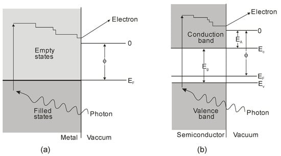- Koller, L.R. Photoelectric Emission from Thin Films of Caesium. Phys. Rev. 1930, 36, 1639–1647. [Google Scholar] [CrossRef]
