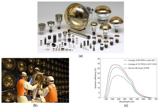 - Bronner, C. PMT Development for Hyper-Kamiokande, The 22nd International Workshop on Neutrinos from Accelerators, 2021. Available online: https://indico.cern.ch/event/855372/contributions/4366117/attachments/2303388/3918395/HKPMT_NuFACT.pdf (accessed on 24 April 2023).